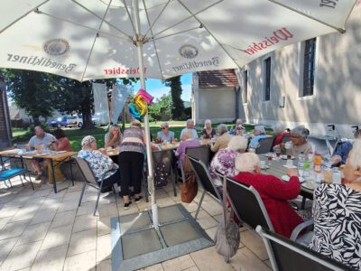 Bei herrlichem Sommer-Sonnen-Wetter luden wir unsere Angehörigen zum Mitfeiern ein. Selbstgebackene Torten und guter Kaffee schmeckten uns auf der großen Terrasse.